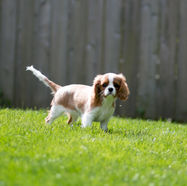 Emmy (Canadian Champion Kressida vom Welfenhof) was born on 7th February 2016, and she was bred by Simone Frankenberg of vom Welfenhof Cavaliers in Germany. Emmy comes from fully health-tested lines; her mother has an MRI A scan at 4.5 years of age, and her maternal grandmother has an MRI A scan at 7 years of age. Her father is also MRI clear, as is her paternal grandmother - such extensive testing is quite hard to come across in Cavalier King Charles Spaniels. Of course, her parents are heart-clear as well.